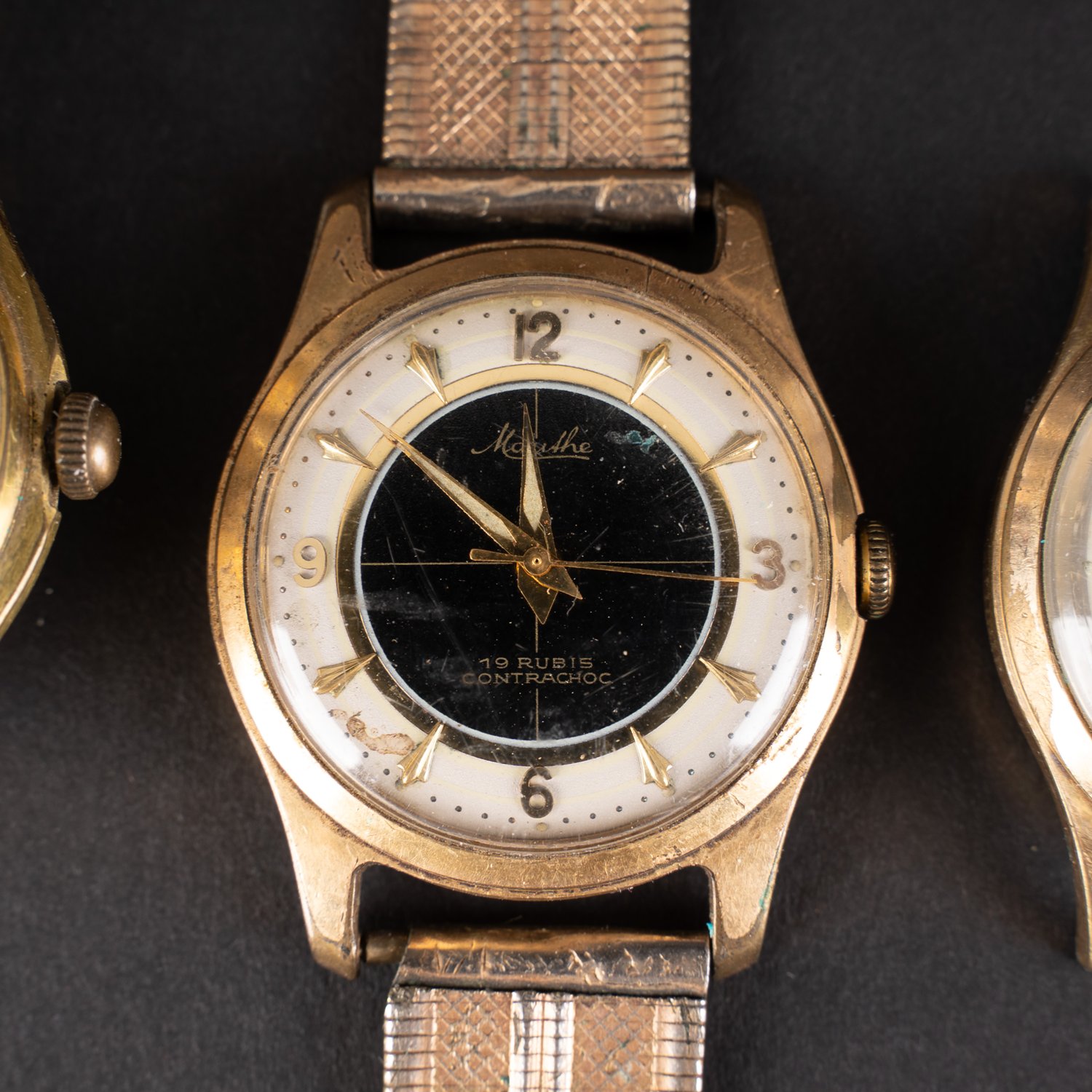 5-teiliges Konvolut verschiedener Mid-Century Herrenarmbanduhren, 2x Anker, 1x Rukla, 1x Mauthe und 1x Timestar. Ungeprüft, verschiedene Alter, Größen und Erhalt.