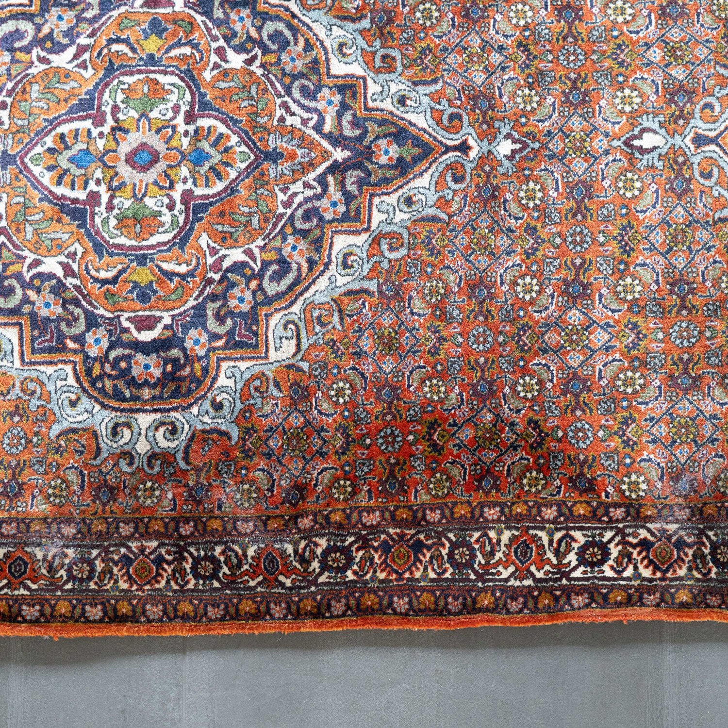 Bidjar - Teppichgalerie, nordwestlicher Iran der 1980er / 90er Jahre, sehr schöner gepflegter Erhalt. Aus tierfreiem, Nichtraucherhaushalt. ca. 89 x 448 cm. Durchgemusterter Fond mit insgesamt 5 Medaillons.