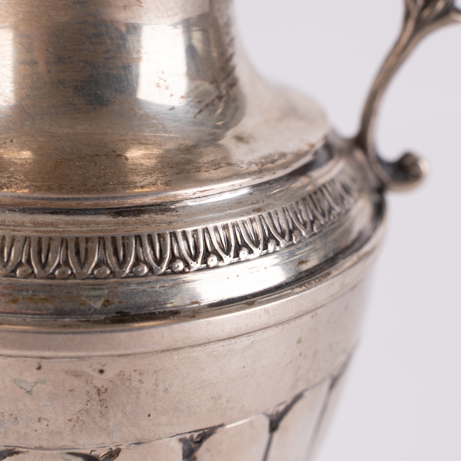 Ziervase in antikisierender Formgebung. 800er Silber massiv, Historismus, 19. / 20. Jhd., Höhe ca. 14 cm, ca. 115 gr., geringe Altersspuren.