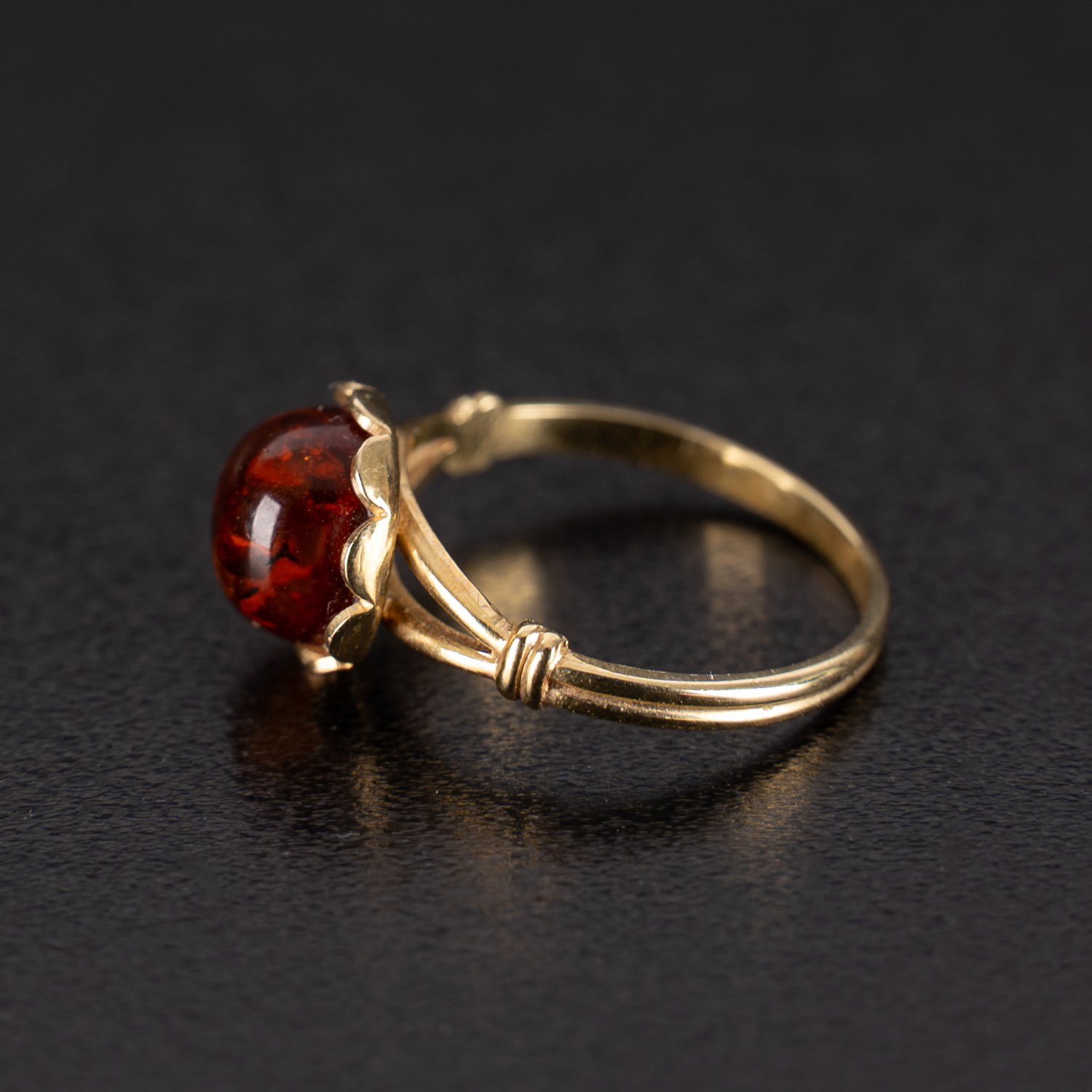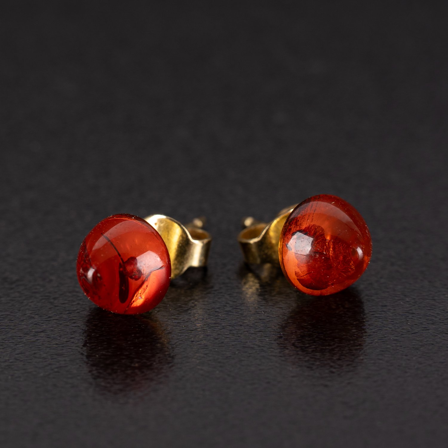 3-teiliges Bernstein-Schmuckset, bestehend aus blütenförmigem Damenring, 50er Ringgröße und 1 Paar Ohrstecker, Länge ü.A. ca. 17mm, Kopf Durchmesser ca. 8mm, in 8k / 333er Gelbgoldfassungen.