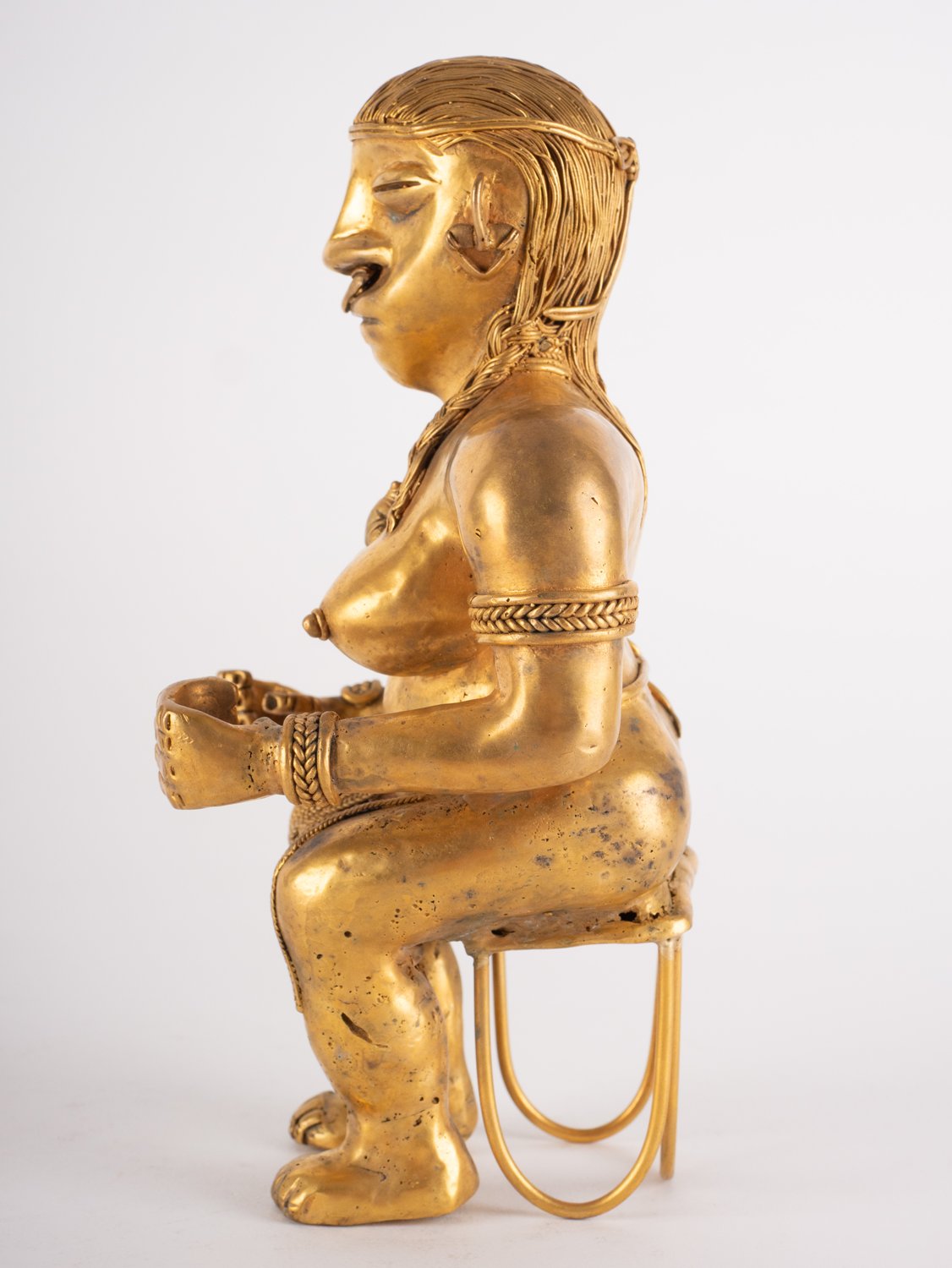 "Große sitzende ""QUIMBAYA"" - Figur, Messing vergoldet. Höhe ca. 23,5 cm. Unbekanntes Alter."