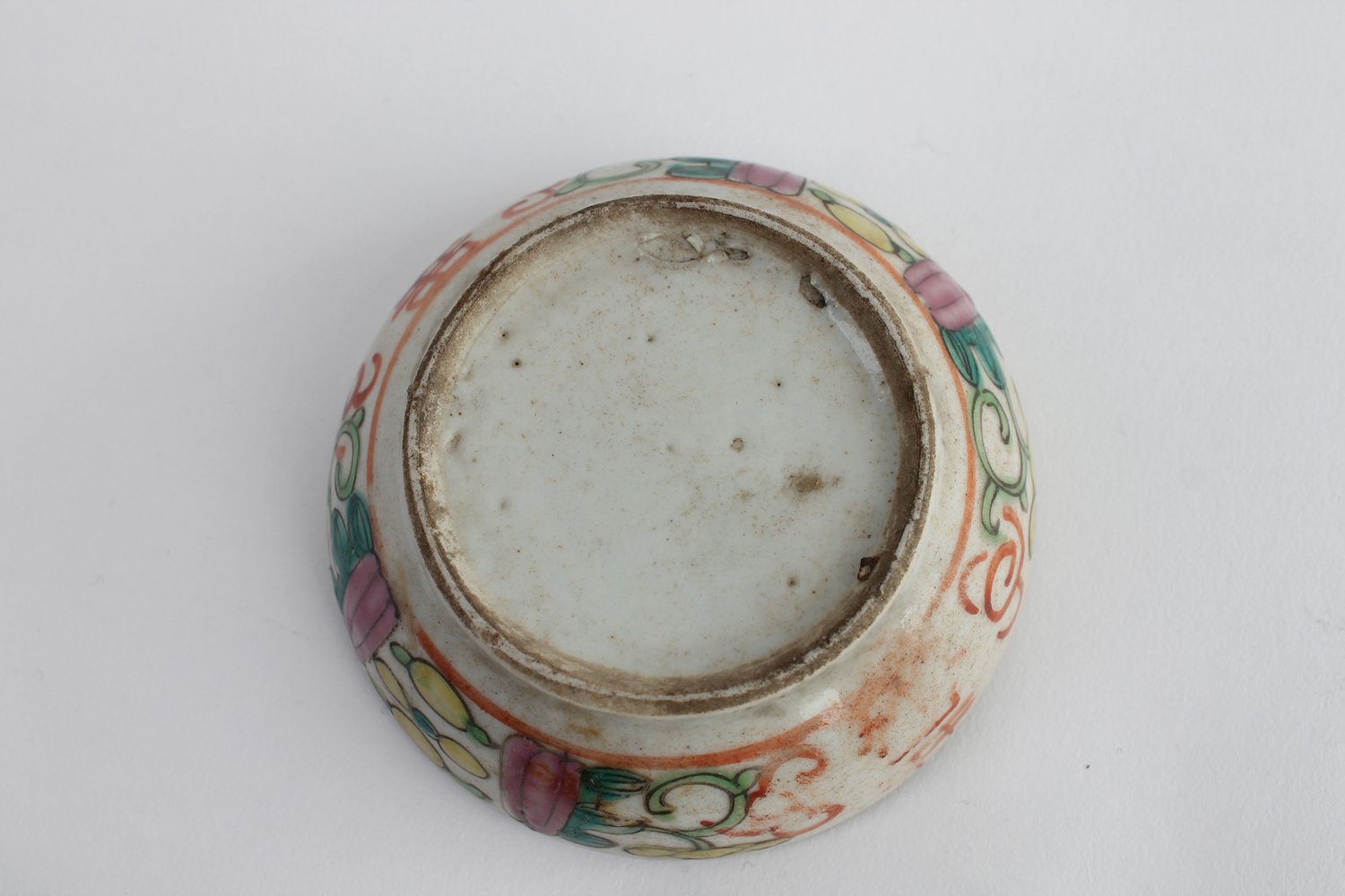 Runde Deckeldose / Stempelfarben Behältnis, ungemarktes chinesisches Weißporzellan mit polychromer Emaille-Malerei, Marriage, Durchmesser ca. 9 cm, guter Erhalt.