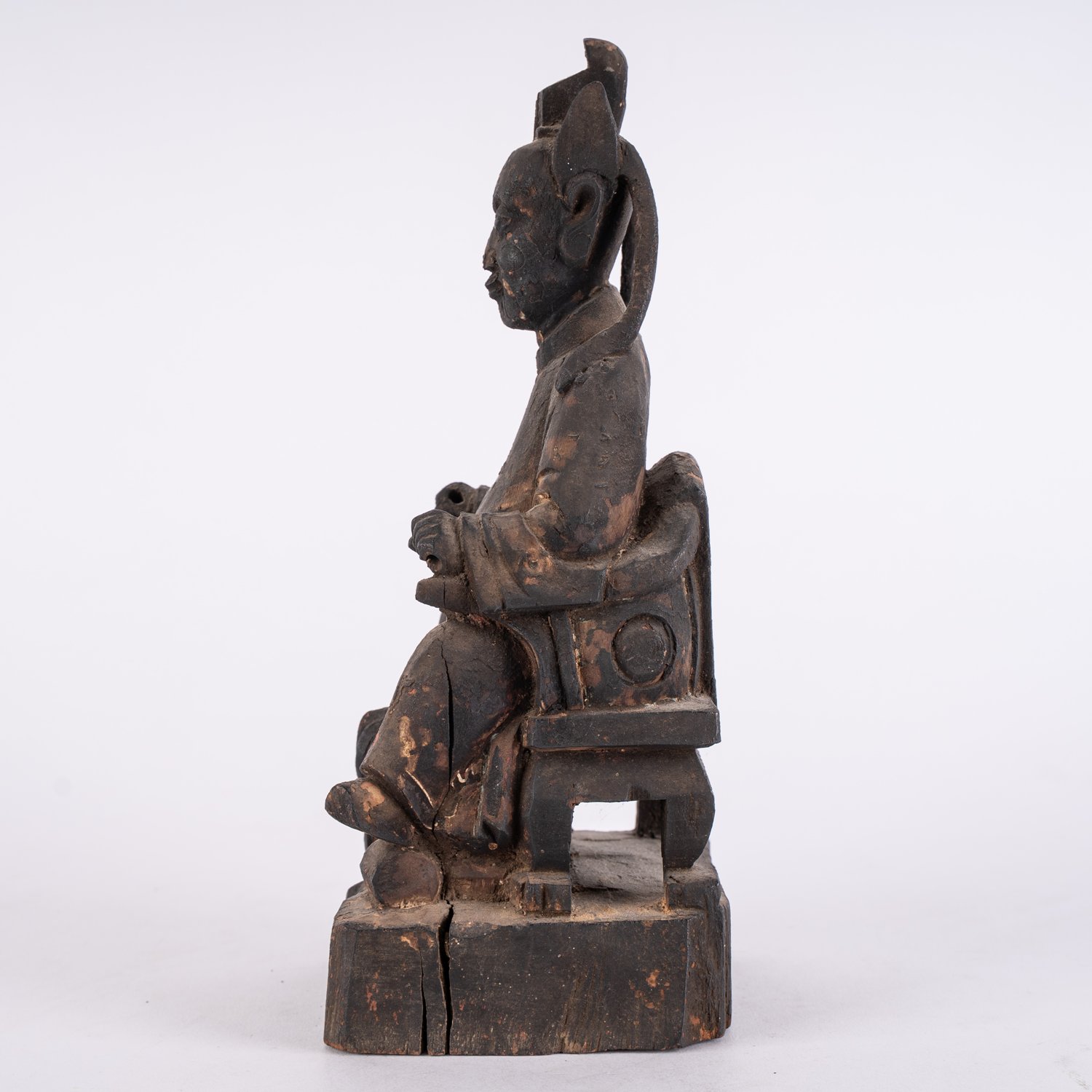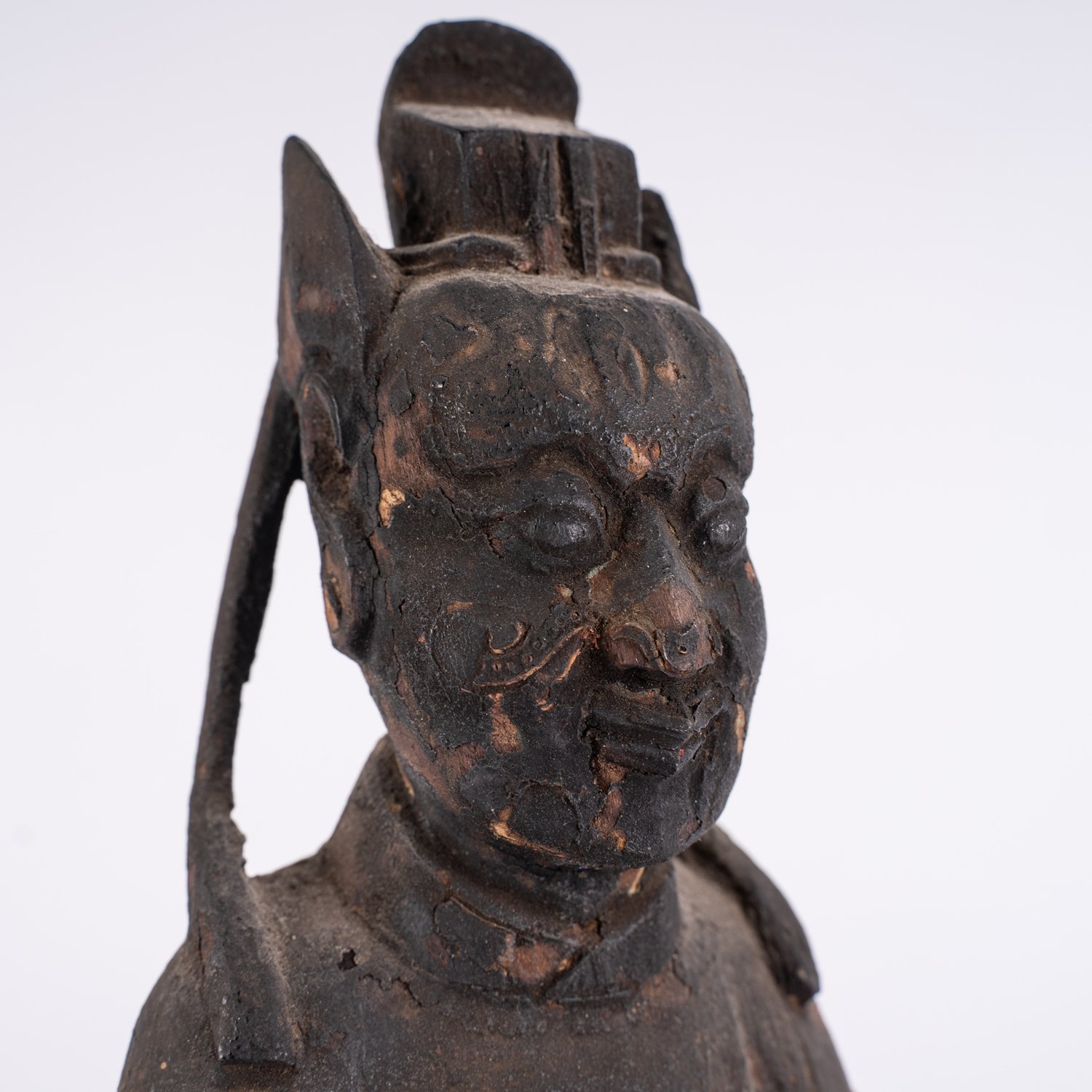 Antike chinesische Holzstatue, 19. / 20. Jhd., Höhe ca. 28,5 cm, partiell Reste einer ehemaligen Farbfassung erkennbar.
