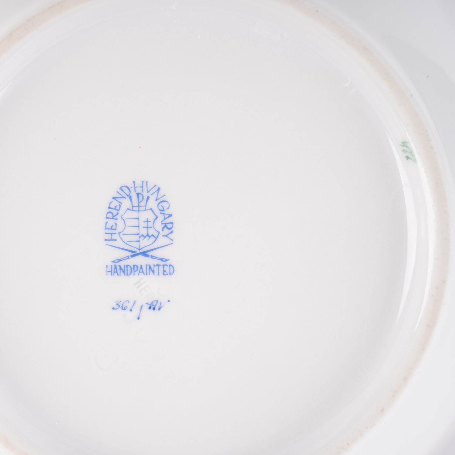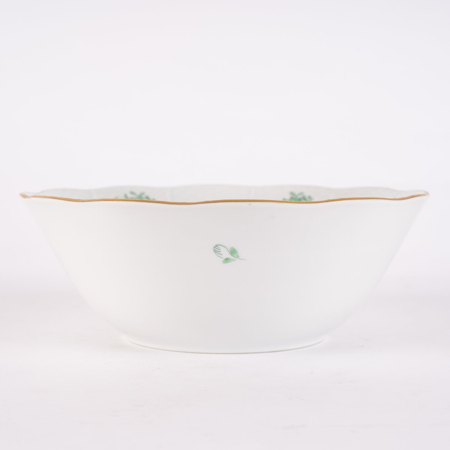 Paar Gemüseschalen, Herend, ungarisches Weißporzellan mit handgemaltem Apponyi-Dekor in Grüntönen und reicher Vergoldung. Sehr schöner Erhalt. Höhe ca. 7,5 Durchmesser ca. 20 cm. Passend zu vorheriger und folgender Lotnummer.