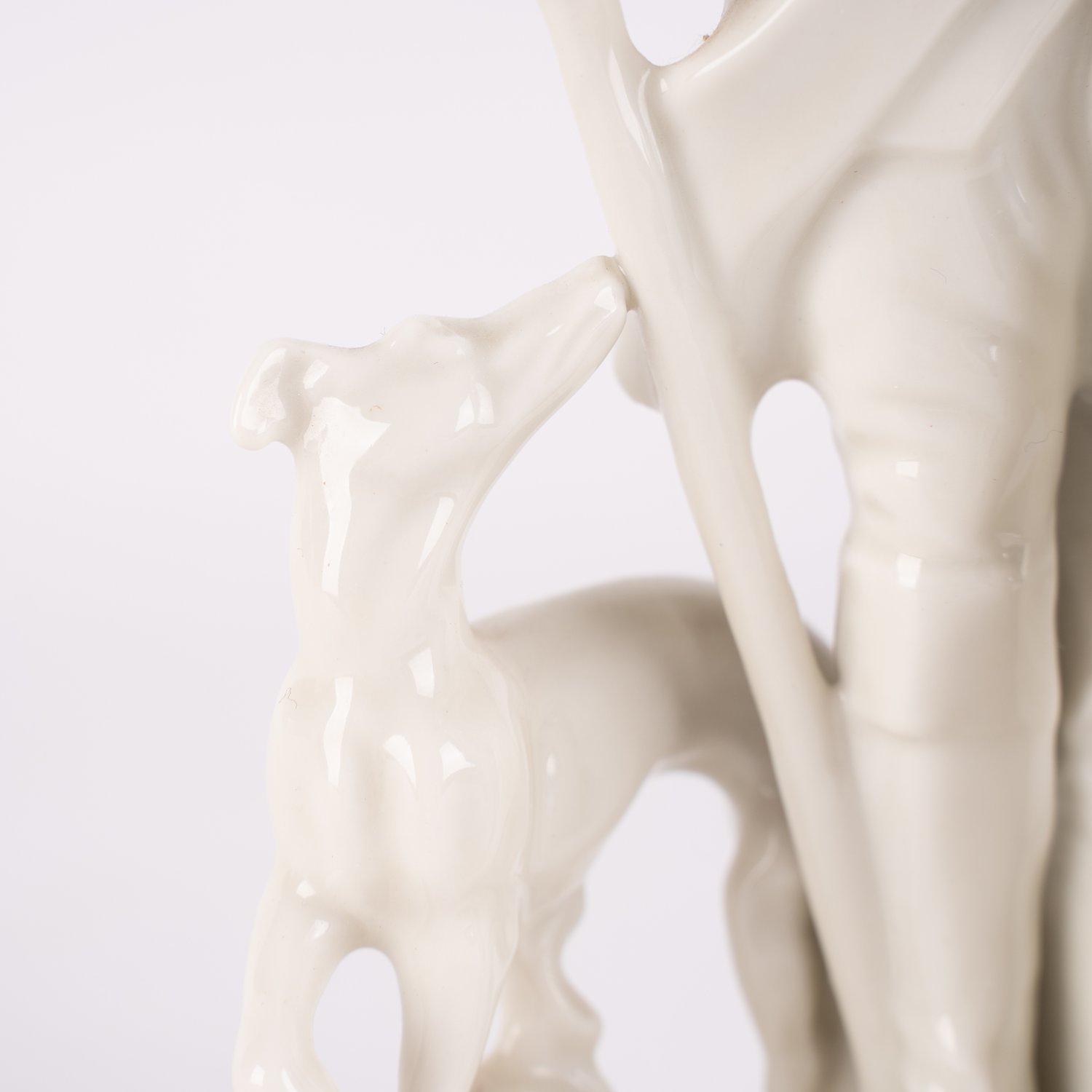 """Der alte Fritz"", Weißporzellan ""Schau Bach Kunst"" ; Friedrich der Große mit seinen Hunden ; cremefarben ; Höhe ca. 20 cm ; guter Erhalt."
