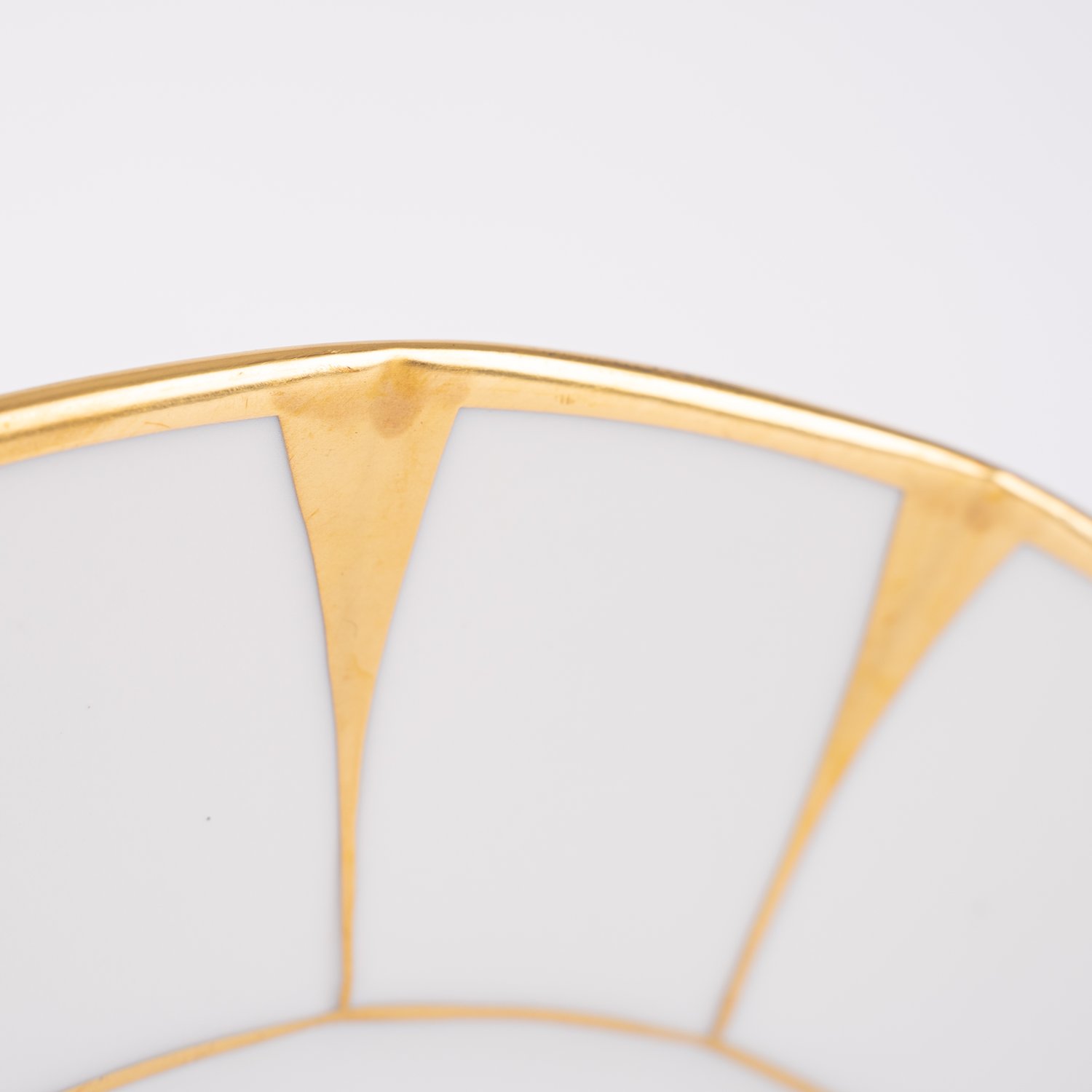 """Grecques Athena"", 5 dreiteilige Teegedecke, Fürstenberg Weißporzellan 20. Jhd., bestehend aus 5 Teetassen (Durchmesser ca. 9,5 cm, Höhe ca. 6,5 cm), 5 Untertassen (Durchmesser ca. 14,5 cm), 5 Kuchentellern (Durchmesser ca. 19 cm). Aufwändiger Golddekor, überwiegend sehr guter Zustand."