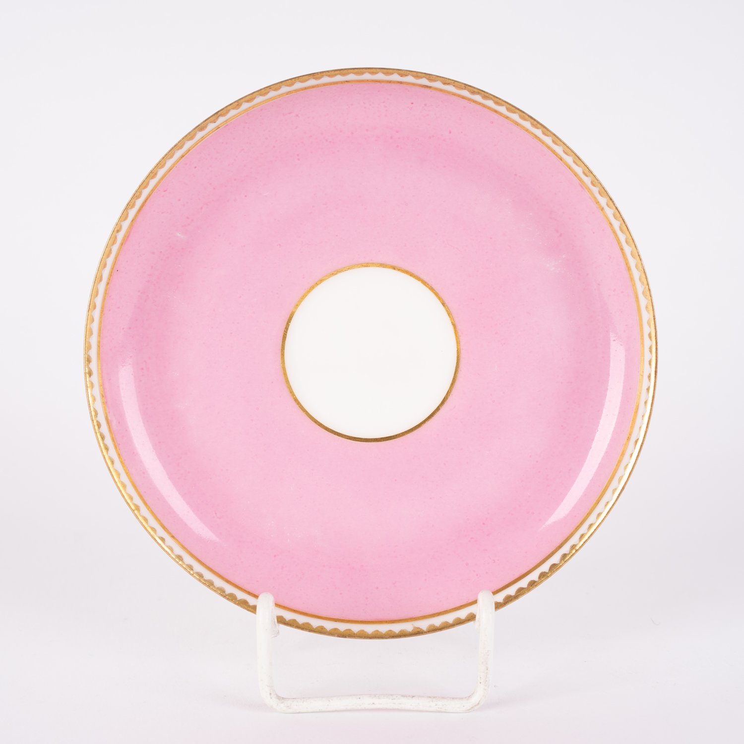 "Folge von 4 dreiteiligen Kaffeetassen, Frankreich der ""Belle Epoque"", Ende 19. Jhd., Weißporzellan mit polychromer ""Kinder""-Dekormalerei, rosafarbigen Fond und reichlich Goldstaffage, unterseitiger Händlerstempel des ""Victor Etienne... Paris"", sehr schöner Erhalt. Vitrinenstücke. Bestehend aus 4 Kaffeetassen, 4 Untertassen und 4 Kuchentellern, mit unterschiedlichen ""Kinder"" - Dekoren."