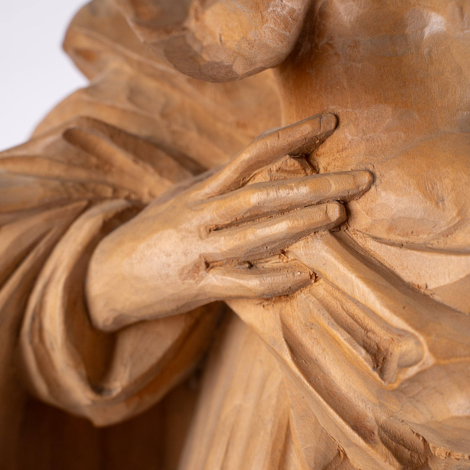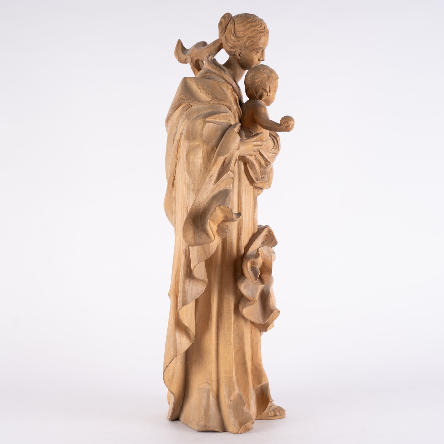 """Maria mit dem Jesuskind"" - Holz geschnitzt, Höhe ca. 61 cm, rückseitig Künstlermonogramm / unter dem Stand Stempel bezeichnet: ""Ernst Kronschnabl, Holzbildhauer, Klautzenbach, Bayr. Wald, ... Zwiesel"". Spätes 20. Jhd. Sehr schöner Erhalt."