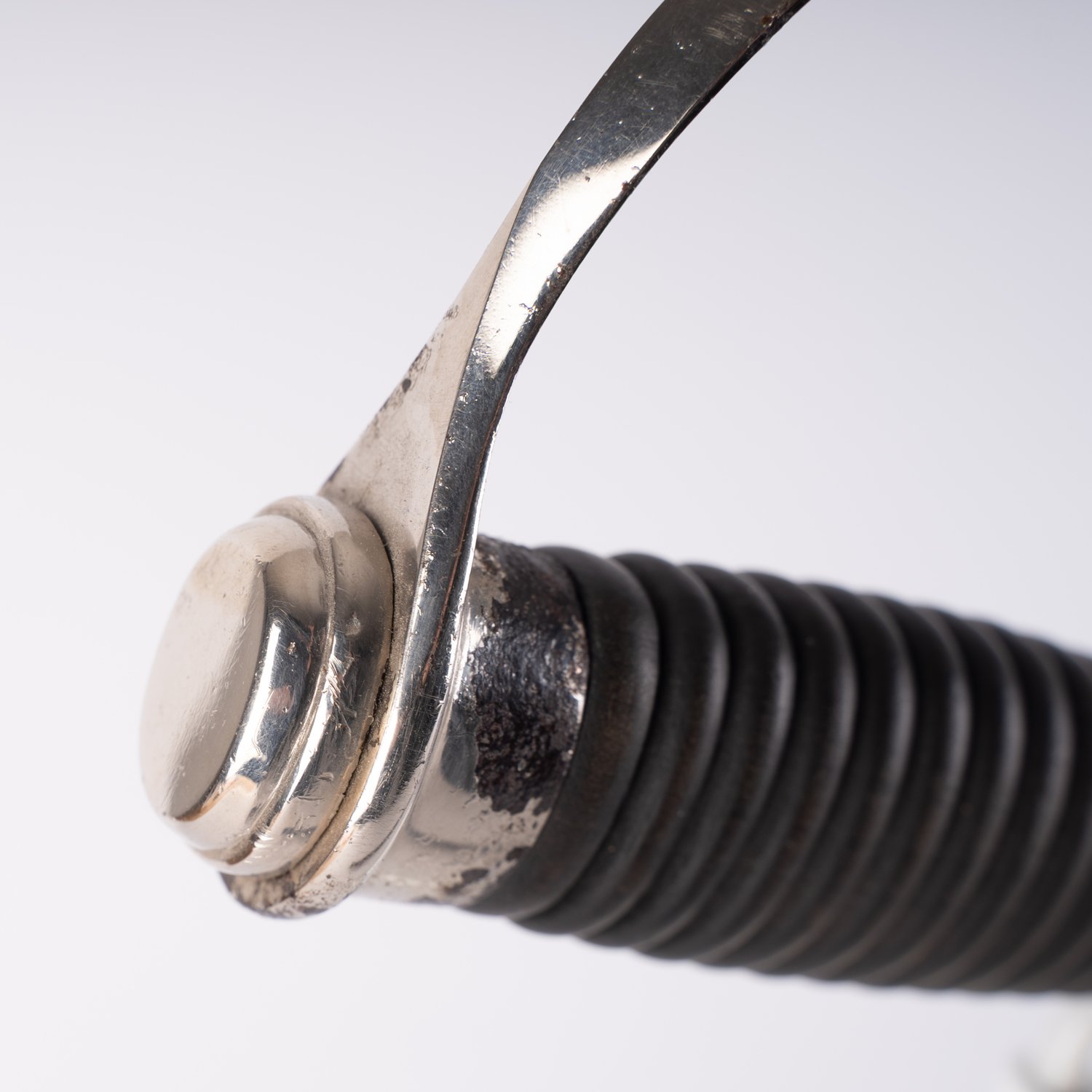 Degen für Polizei-Unterführer der SS, versilberte Eisenausführung, 100% Original, mit Gahrstempel auf dem Gefäß, Aluminiumadler, Hersteller Carl Eickhorn, Gesamtlänge ca. 105 cm, Klinge in schöner Erhaltung, vom gleichen Träger wie der Löwenkopfsäbel.