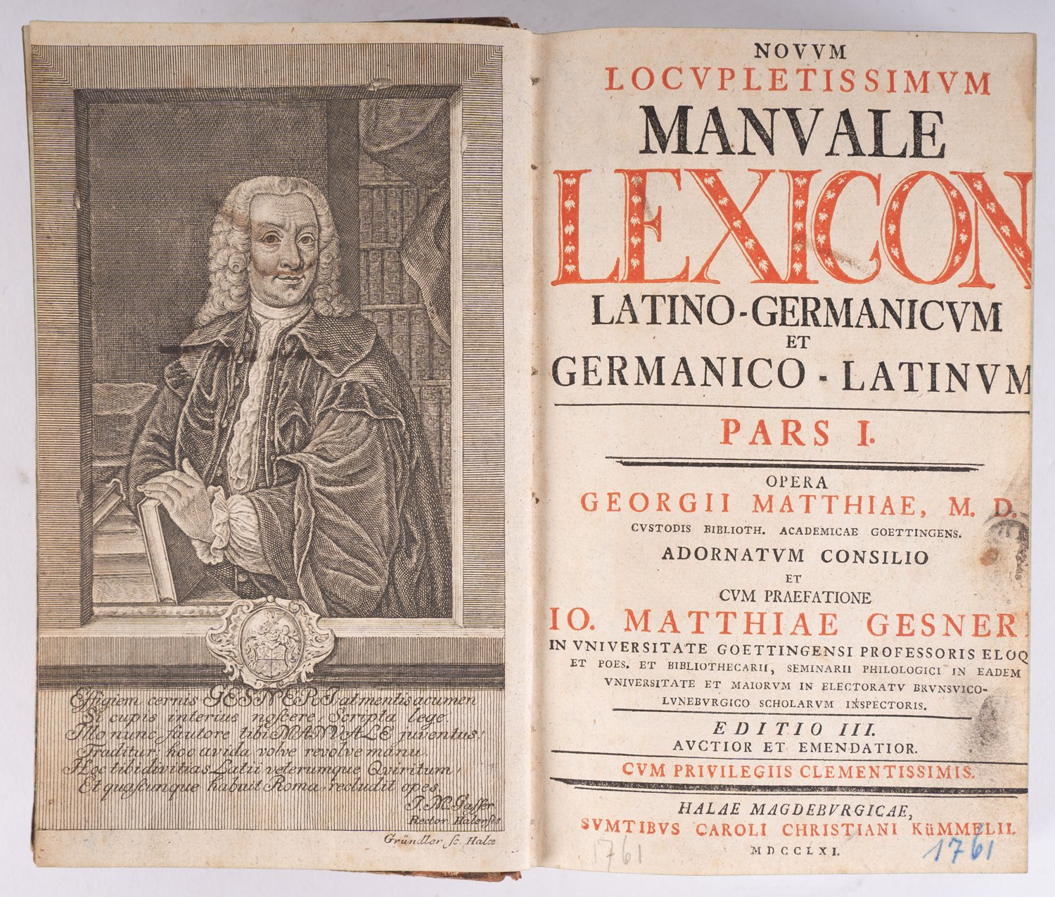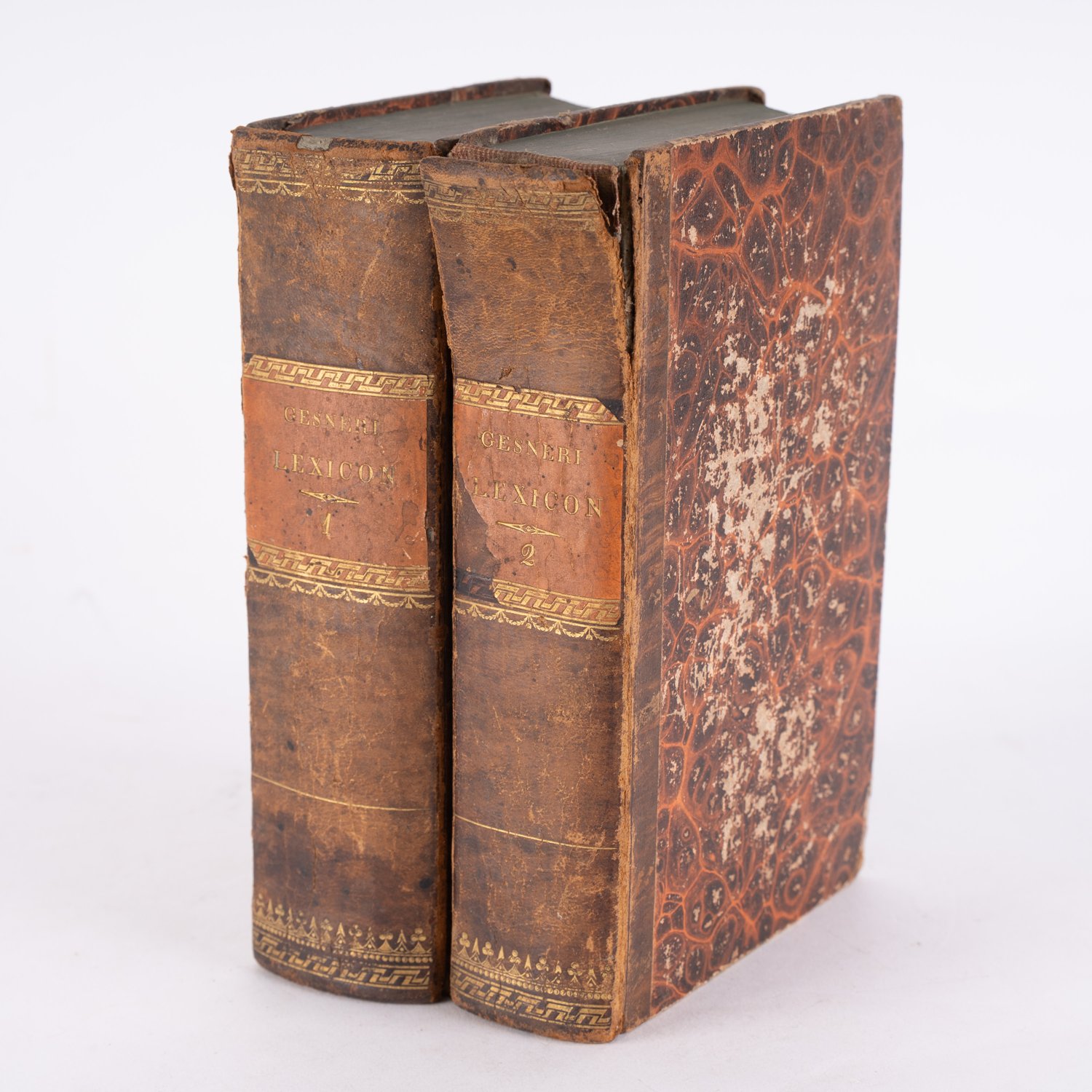 """NOVUM LOCUPLETTISSIMUM MANUALE LEXICON LATINO - GERMANICUM... HALAE MAGDEBURGICAE MDCCLXI"" (1761), 2 Bände, Lederbücherrücken, insgesamt gutes, gebrauchtes Exemplar, Format ca. 21 x 14 cm, geringe Schäden."