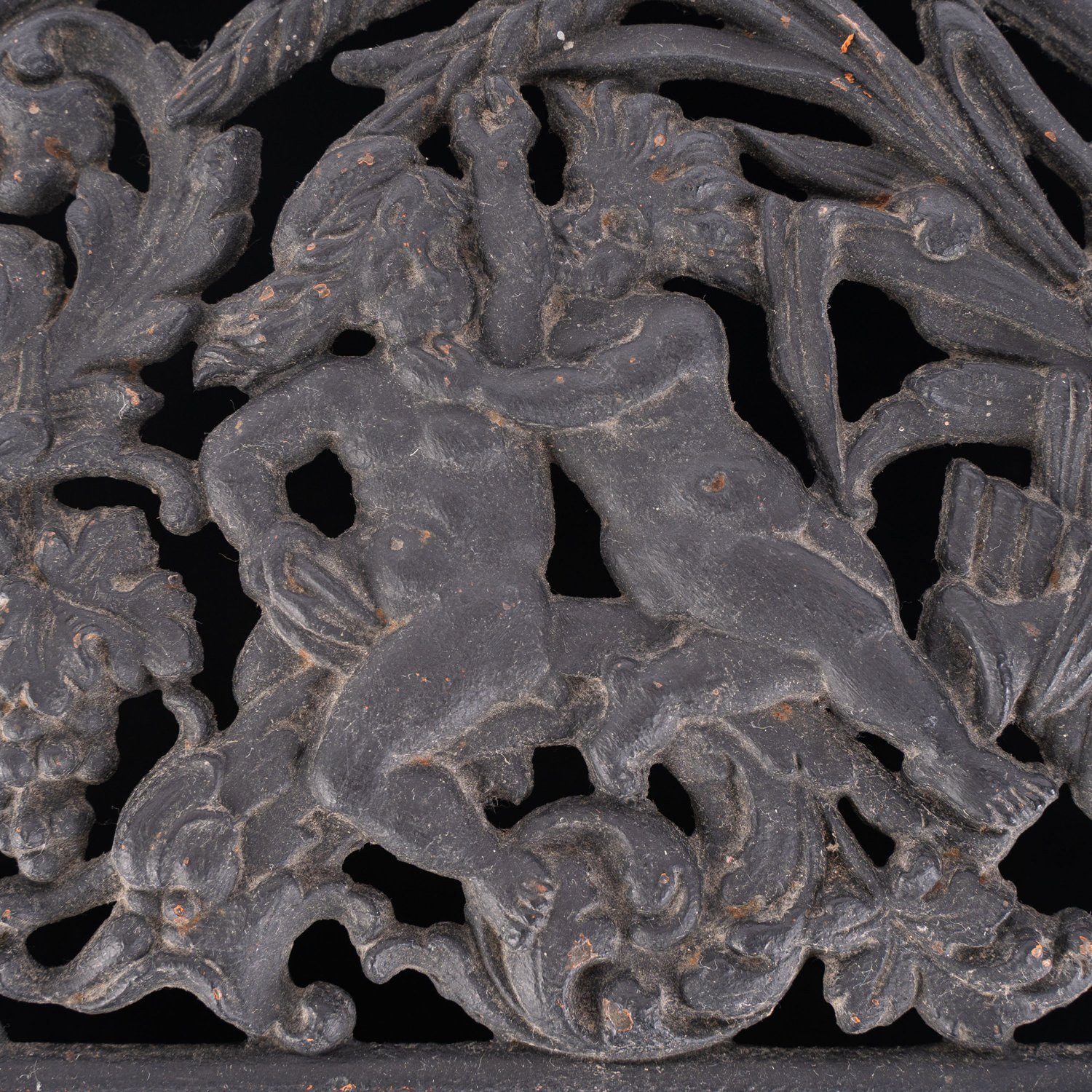 Antiker Kohlenkasten, Eisenkunstguss, 19. Jhd., prächtig durchbrochen gearbeiteter Deckel, sehr schöner Erhalt. Länge ca. 45 cm. Kein Paketversand.
