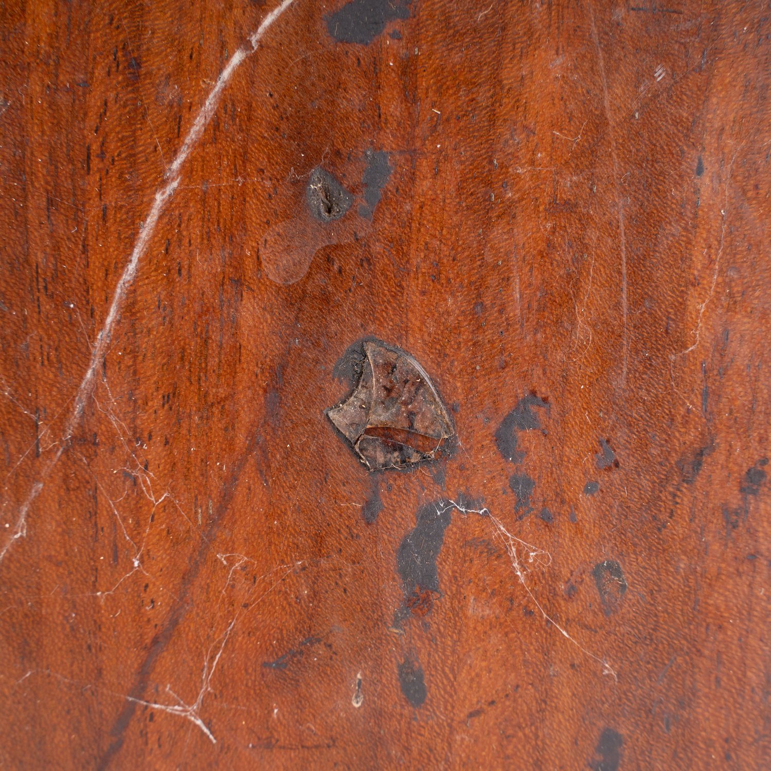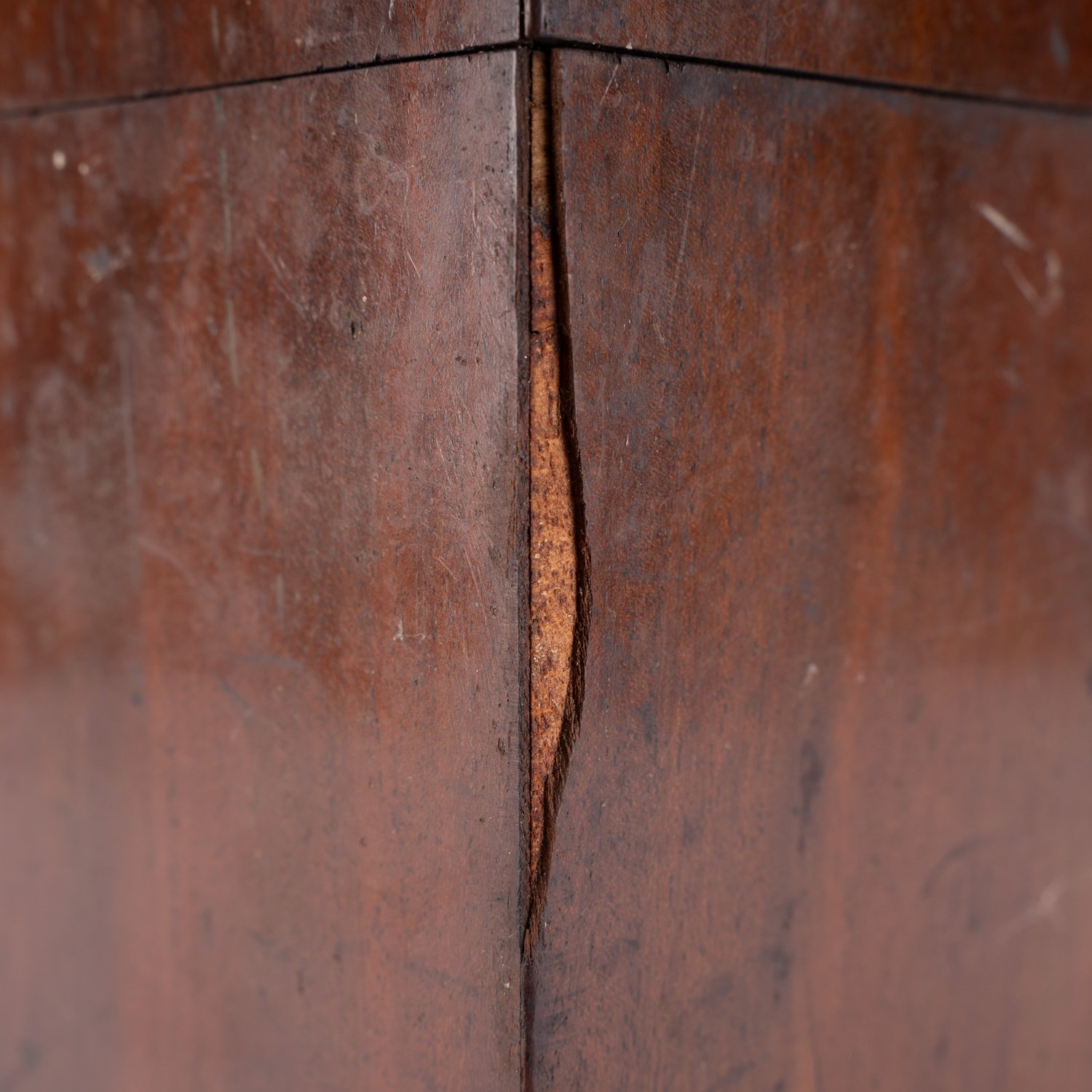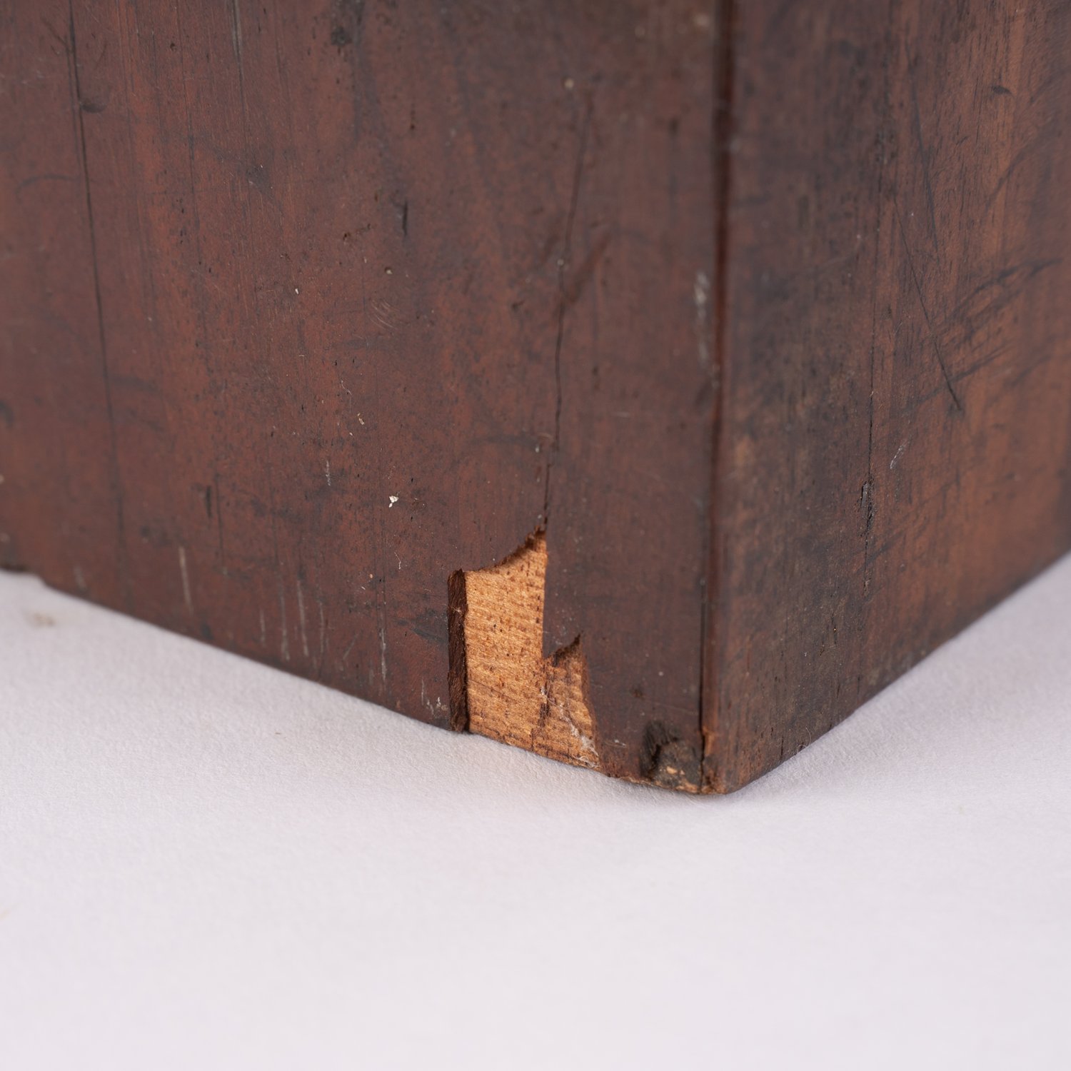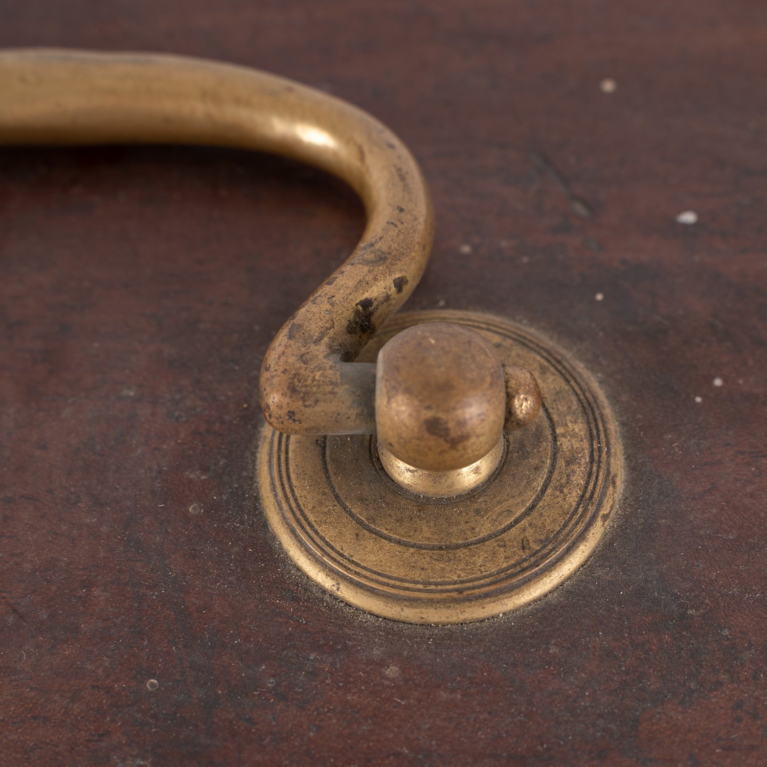 "Verschlossener rechteckiger Transportkoffer für ...? Massiver Holzkasten, schauseitig mit Mahagoniholz furniert, schweres Messingbeschlagwerk, bodenseitige Siegelreste bezeichnet ""... F. DANIEL Königl. ..."" ca. 24 x 38 x 15 cm. Unrestaurierter Fundzustand, Schlüssel fehlt."